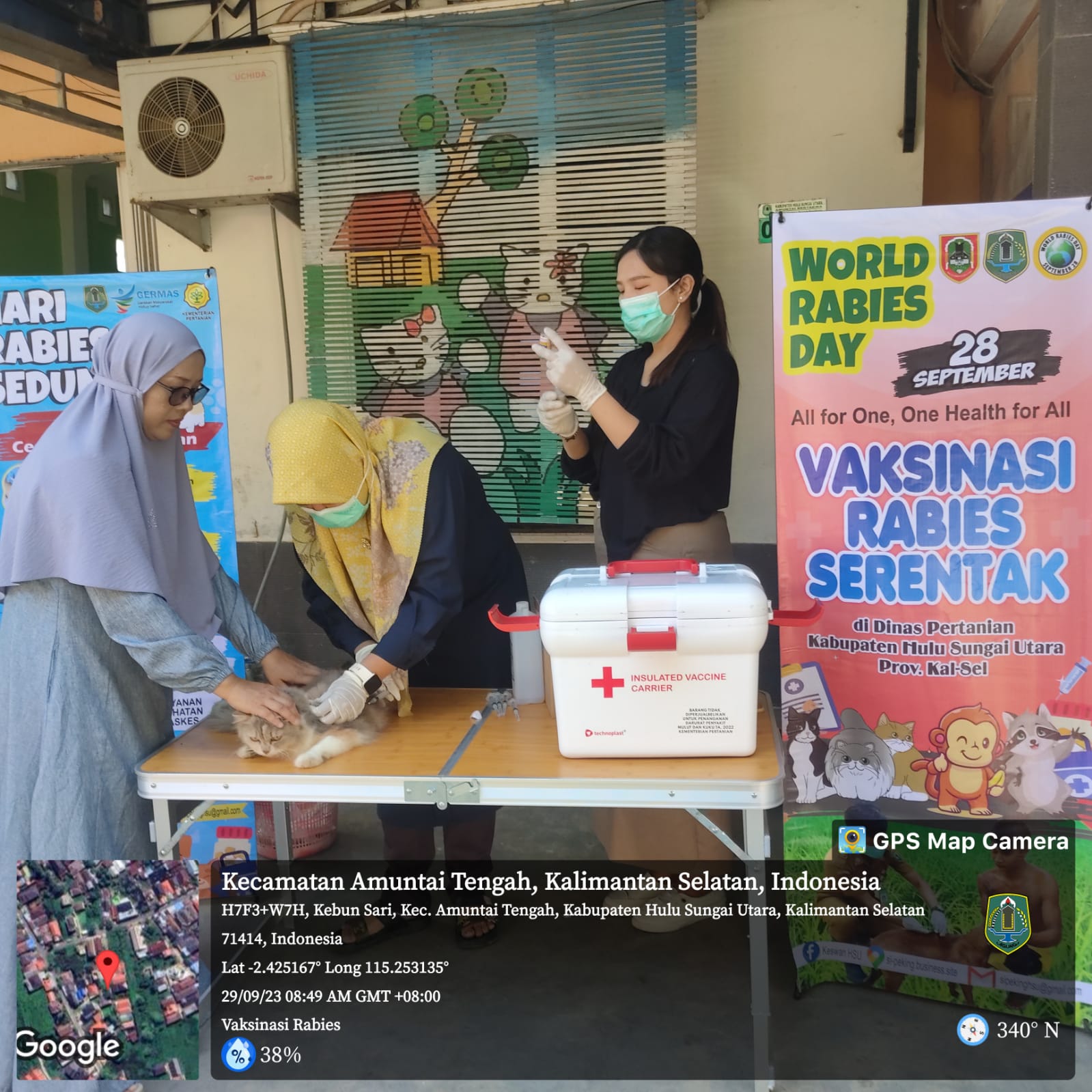 Layanan yang diberikan: Pemeriksaan kesehatan hewan sebelum vaksinasi, vaksinasi rabies, konsultasi tentang penyakit rabies.