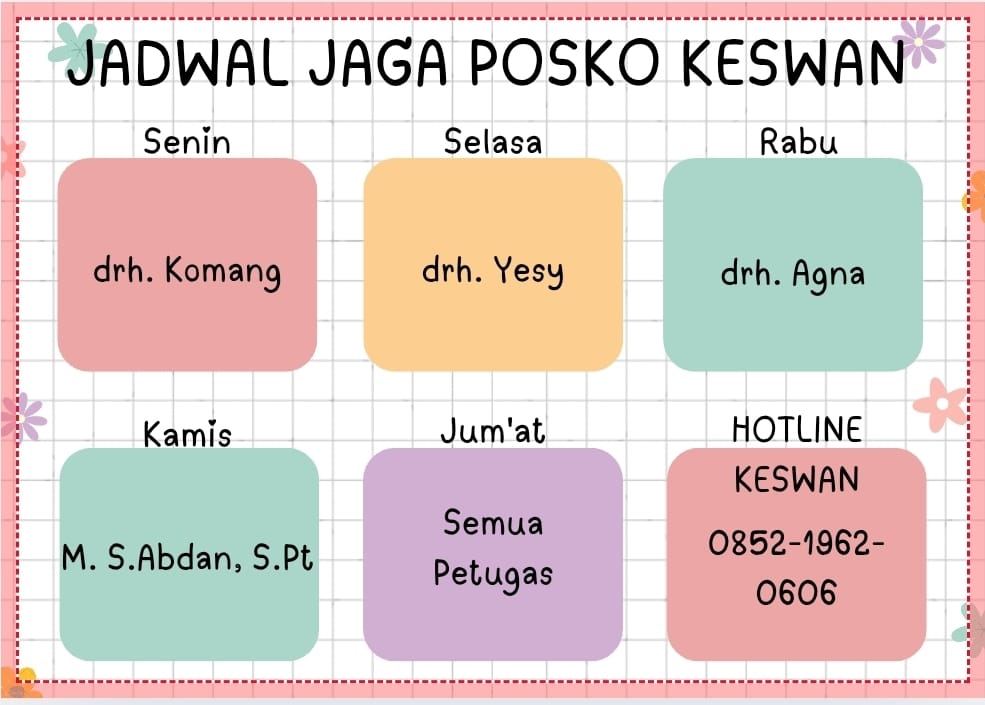 Jadwal Jaga POSKO di Bidang Keswan dan Kesmavet